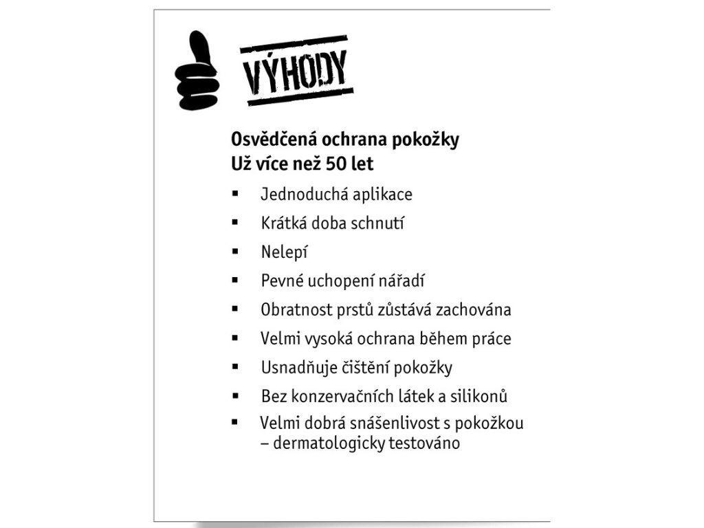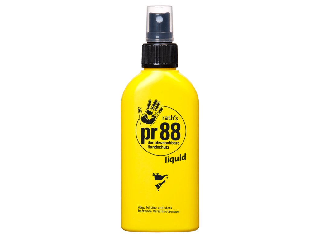 Upozornění k produktu Ochranný film přípravku pr88 liquid se při kontaktu s vodou rozpustí. To potvrzuje žádoucí účinek možnosti smytí pouze vodou. Při nošení rukavic vzniká na pokožce vlivem pocení vlhkost. Ta rovněž narušuje ochranný film. Proto přípravek pr88 liquid nedoporučujeme používat při práci v rukavicích. Mají-li se při práci používat rukavice, doporučujeme naši emulzi na ochranu pokožky rath’s multi protect pro střídavé namáhání pokožky.