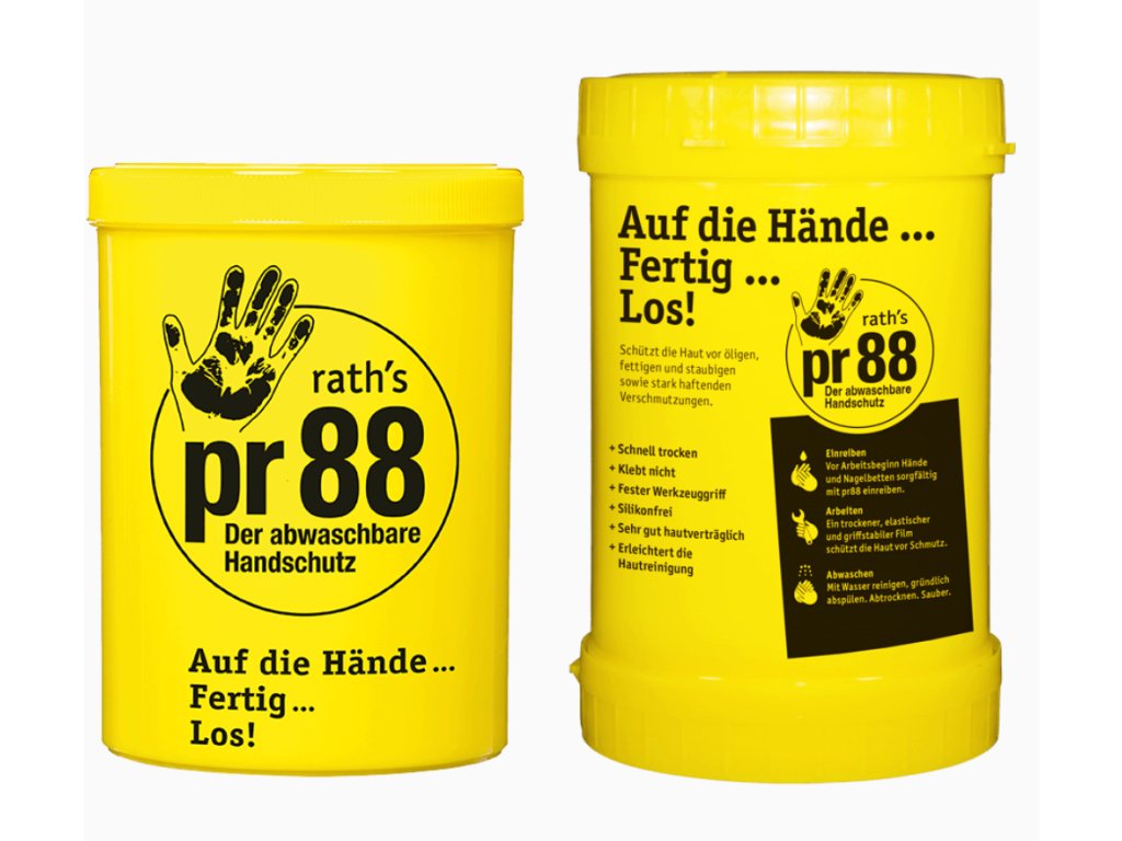 Upozornění k produktu Ochranný film přípravku pr88 se při kontaktu s vodou rozpustí. To potvrzuje žádoucí účinek možnosti smytí pouze vodou. Při nošení rukavic vzniká na pokožce vlivem pocení vlhkost. Ta rovněž narušuje ochranný film. Proto nedoporučujeme používat přípravek pr88 při práci v rukavicích. Mají-li se při práci používat rukavice, doporučujeme naši emulzi na ochranu pokožky rath's multi protect pro střídavé namáhání pokožky.